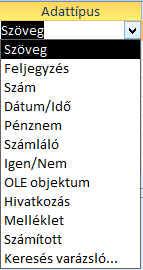 Az egyes mezők adattípusait át kell gondolni. Mit fogunk ezen a mezőn tárolni?