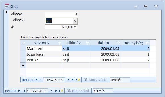 Az űrlapok arra jók, hogy rajtuk keresztül láthassuk a táblánk vagy lekérdezésünk adatait.